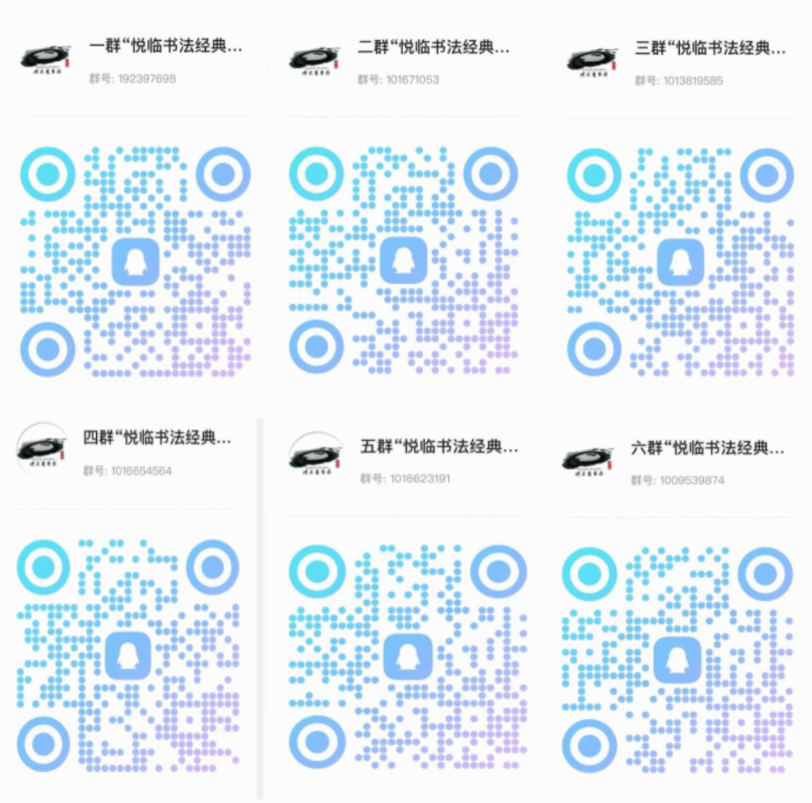 (1)请参与“笔墨绘征程,青春书华章”临摹打卡活动学分认证组的学生最晚于1月19日(含)前加入活动QQ群,二维码如下(选择一个群加入即可):
