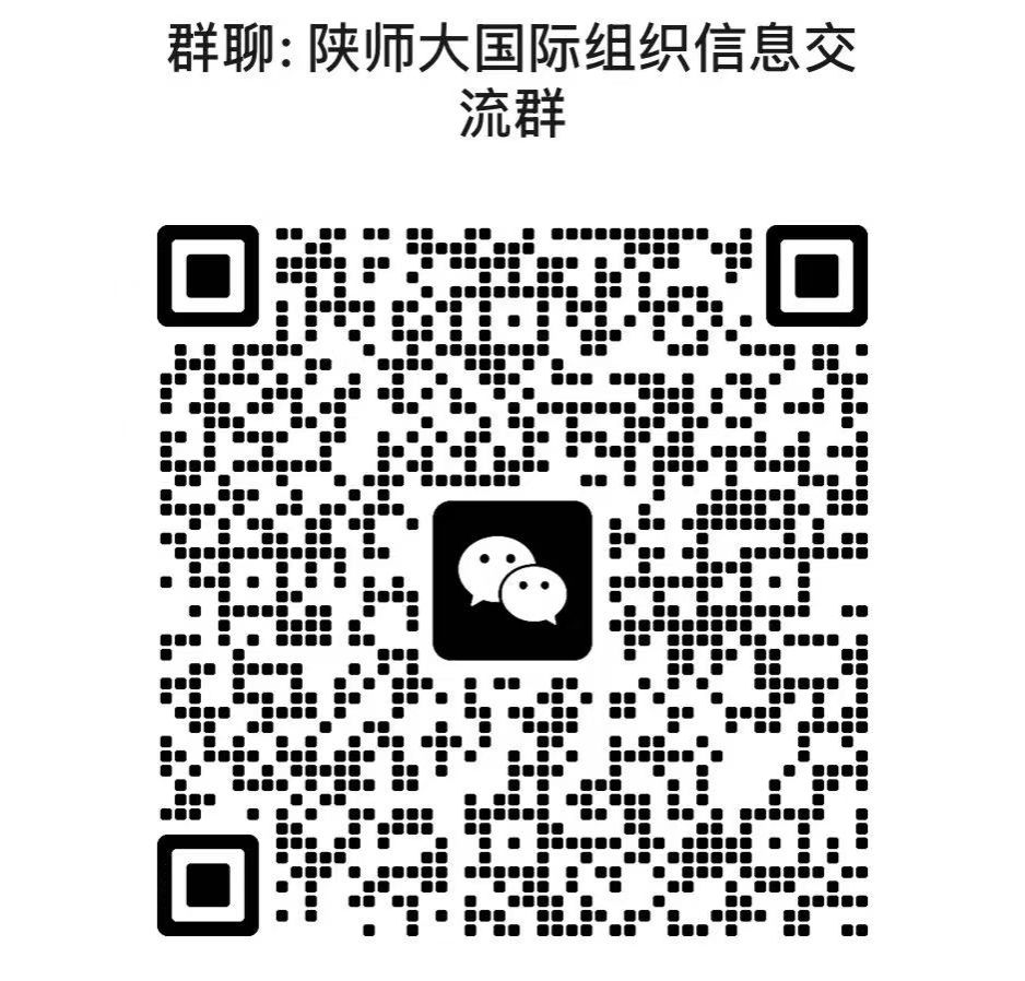 有意向选修全球治理课程或赴国际组织实习、任职的同学,请加入“陕师大国际组织信息交流群”(群内推送全球治理课程、讲座、国际组织实习、就业招聘信息、留基委相关项目等)。