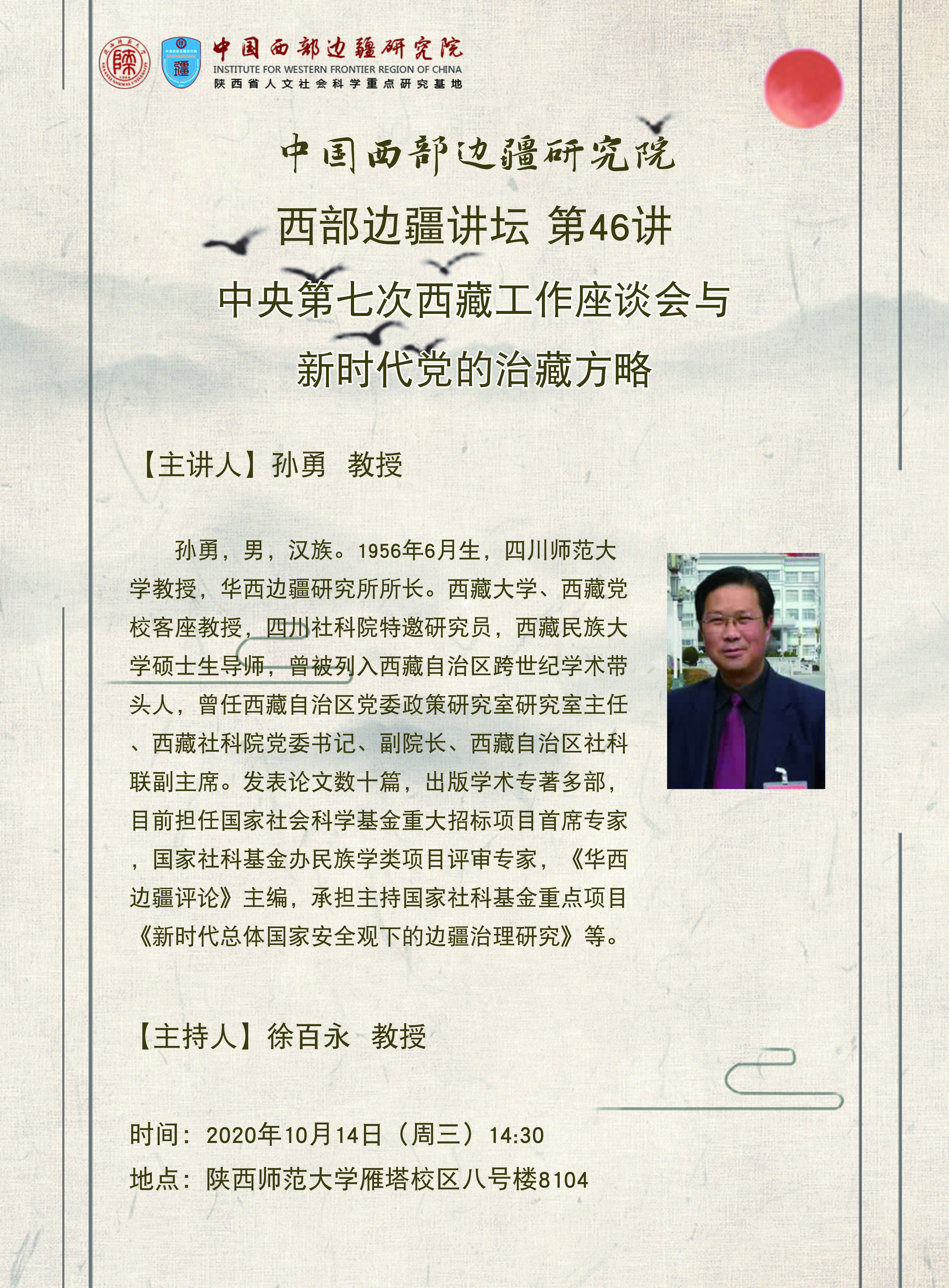 西部边疆讲坛第46讲:中央第七次西藏工作座谈会与新时代党的治藏方略