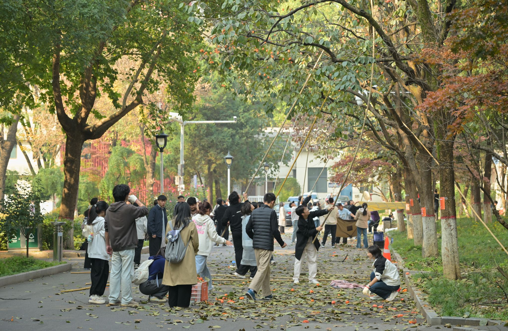 据悉,学校将对采摘的柿子进行挑选分类,一部分作为劳动成果赠予辛勤付出的师生,另一部分通过开展“‘柿柿’如意 寄语金秋”柿子品鉴分享活动,以写祝福、猜谜语、知识竞答等形式,供全校师生共享。