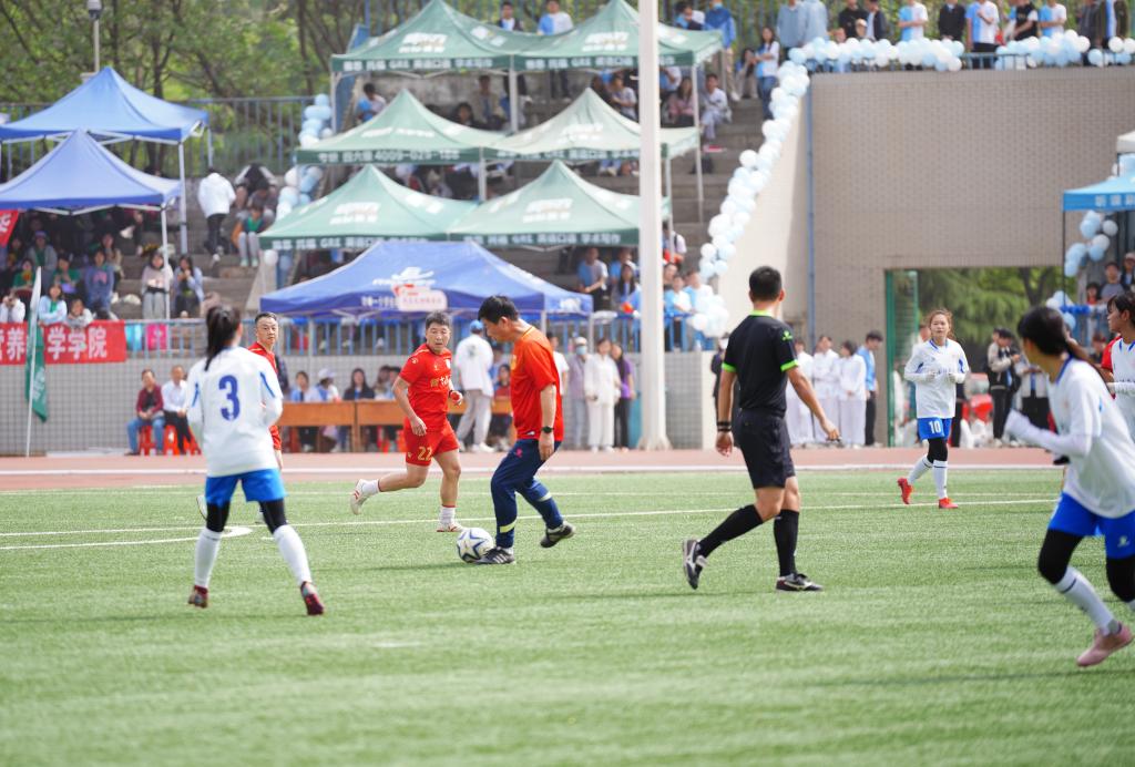 文体表演后,教工足球队与学生女子足球队为全校师生员工带来了一场精彩的足球表演赛。游旭群校长十分重视体育工作,他也加入到教工代表队,与老师同学们一起比赛。双方队员团结协作、奋力奔跑,精彩的传球、默契的配合引发观众连连喝彩、阵阵掌声,展示了学校积极开展阳光体育运动的浓郁文化氛围。