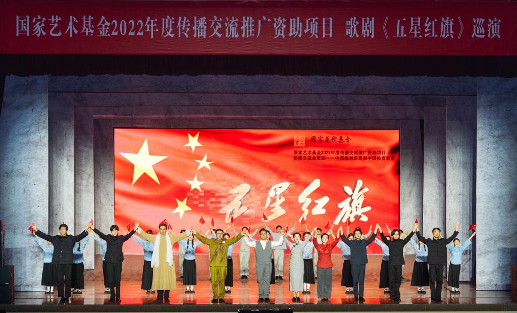 师大新闻网讯 5月25日,由温州市委宣传部、温州大学、瑞安市委联合出品的国家艺术基金资助项目原创歌剧《五星红旗》在我校终南音乐厅上演。我校师生代表1200余人观看演出。
