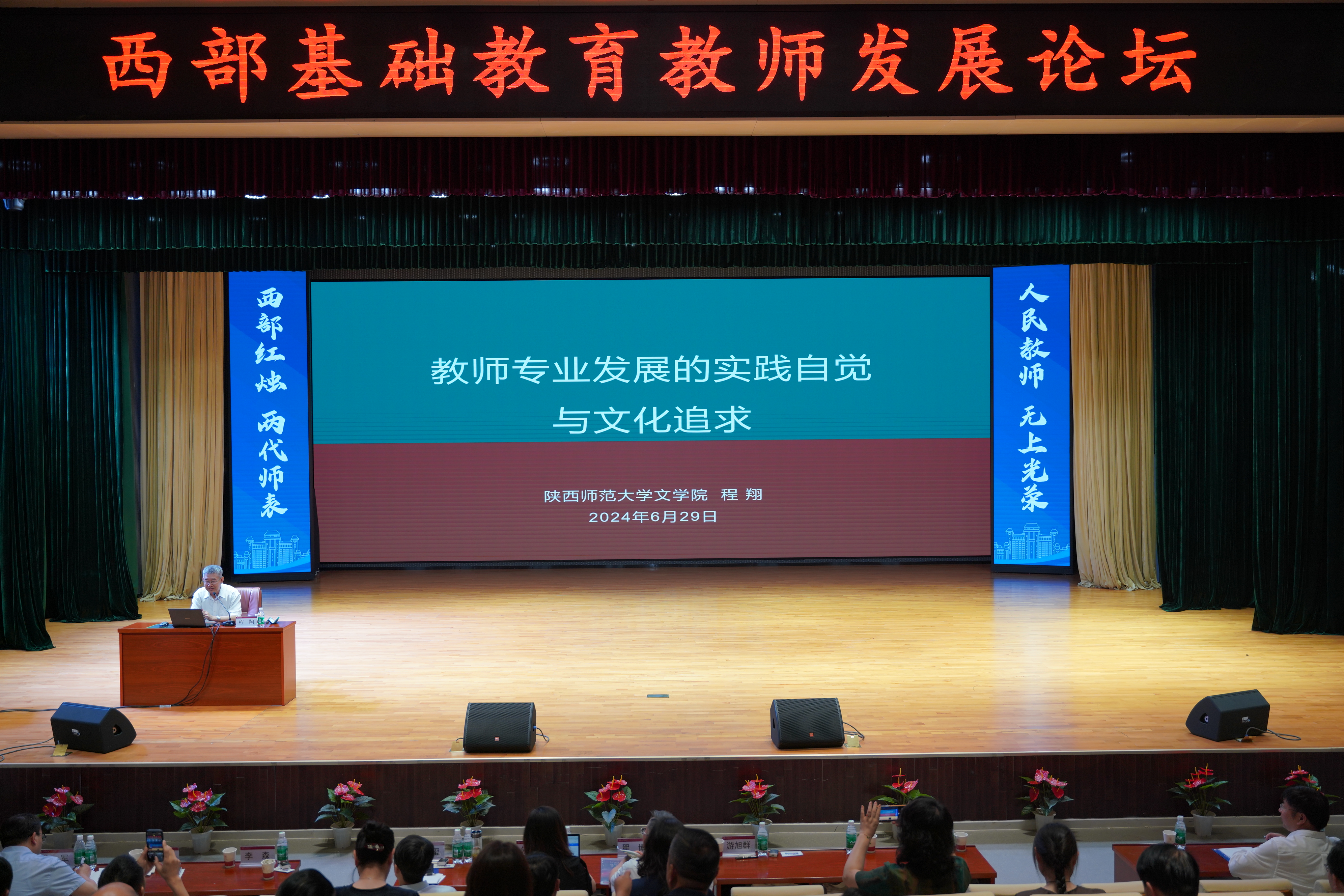 大会第二阶段举行了西部基础教育教师发展论坛,翟博与全国优秀教师、我校特聘教授程翔分别作主旨报告,参会代表聚焦西部边疆教师教育与基础教育领域发展中的重点难点问题,共商建设高水平研究智库举措,为西部师范院校建强做优教师教育,支撑西部基础教育高质量发展献计献策。