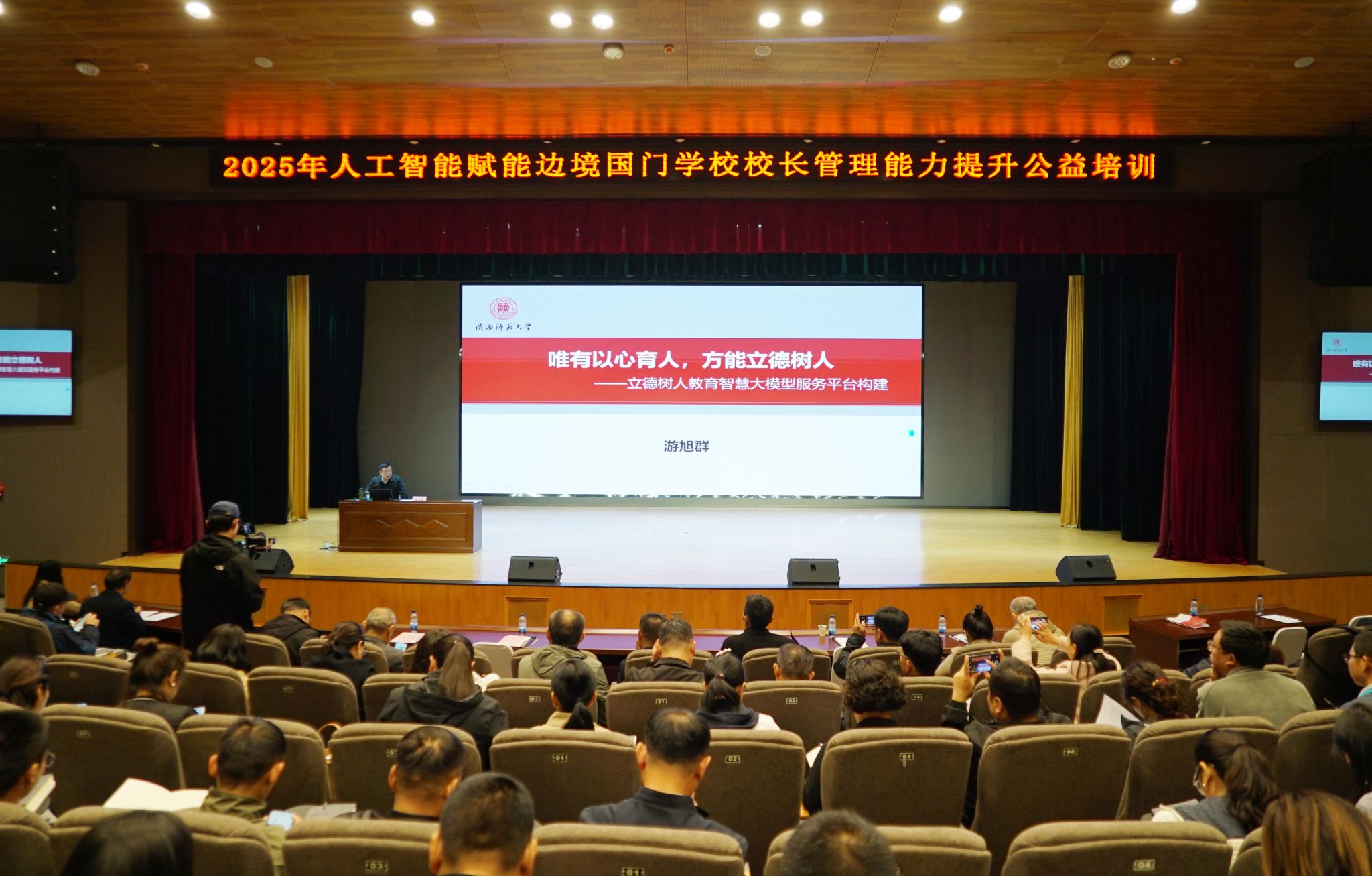 师大新闻网讯近日,由教师干部培训学院举办的“2025年人工智能赋能边境国门学校校长管理能力提升公益培训”在雁塔校区举行。我校校长游旭群教授以“唯有以心育人 方能立德树人”为题作首场专题报告,副校长陈新兵出席开班仪式并致辞,来自全国10个省区、288所边境县国门学校的校长完成了为期10天的深度研修。