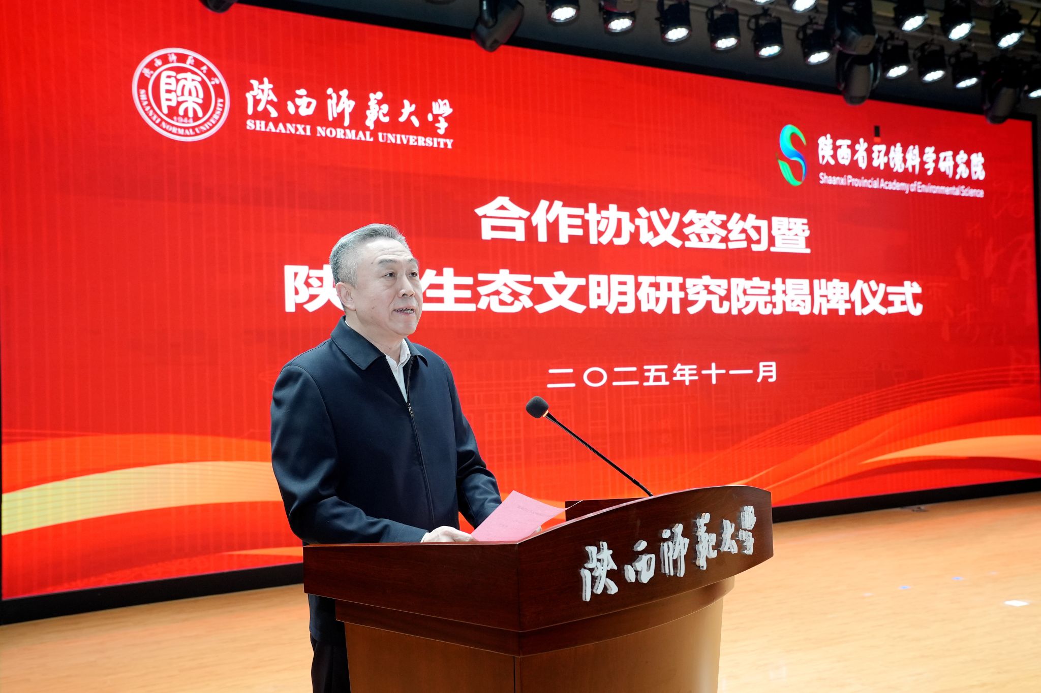 师大新闻网讯11月29日,我校与陕西省环境科学研究院签署合作协议,并举行陕西生态文明研究院揭牌仪式。中国工程院院士冯起,陕西省生态环境厅纪检监察组组长刘志生,陕西省环境科学研究院院长魏新军,校党委书记李晓兵,校长游旭群,副校长董治宝、陈新兵,校长助理袁一芳出席大会。会议由董治宝主持。